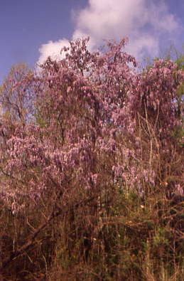 The beautiful purple wisteria blossoms in Marshall. Later at Lansing Junction, we took the south mainline into Longview, arriving there at 9:50 AM for a long fresh air break.