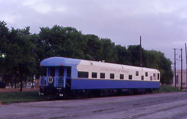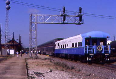 Texarkana was a fresh air stop and here is the rear of the Texas Eagle with "Northstar" bringing up our markers. Its history is Florida East Coast 3, ex. Rail Force One, exx. Wheeling and Lake Erie 3 "The North Star", exxx. PPCX 800289, exxxx. Burlington Northern 1198 "St. Croix River", exxxxx. Great Northern 8 duplex roomette-2 double bedroom-buffet lounge "Manitoba Club", nee Great Northern 16 duplex-roomette-four double bedroom "Oberlin Glacier") built by Pullman-Standard in 1947.