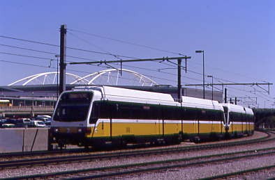 A Dallas Area Rapid Transit light rail train bound for Parker Road.