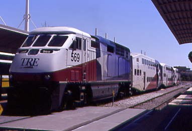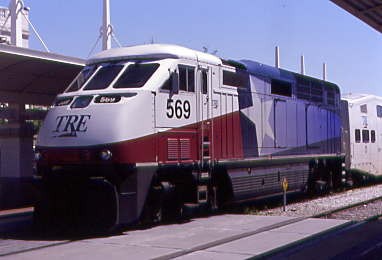 Trinity Rail Express F59PHI 569, built by Electro-Motive Division in 2001.