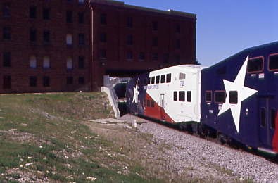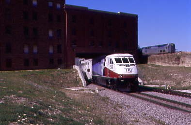 Trinity Rail Express going east through the Tindall Storage building, after which I walked back to the train to wait for our on-time 4:00 PM departure.