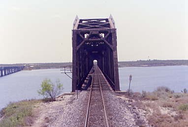 A few minutes later, the Sunset Limited crossing the Amistad Reservoir.