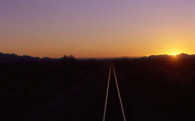 4/1/2005 Sunrise this morning as we climbed the grade to Shawmut. I enjoyed the Saguaro cacti as I talked with Bob from Fort Worth then the dining car opened at 6:00 AM Pacific Time and I dined with Bob, Guillermo and John. Guillermo had a very interesting motorcycle story to tell about his cross-country trip and what happened to put him on the train instead and he was on a Deming-to-Los Angeles round trip. I had the final French Toast and sausage of the journey as we rolled across the Sonoran Desert then through the Gila River Narrows out into the Yuma Valley, meeting Union Pacific 3839 at Fortuna. Once he passed, we sped west to our next station of Yuma, from which departed at 7:51 AM {5:19 AM} and crossed the Colorado River into California.