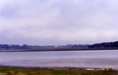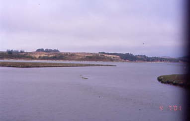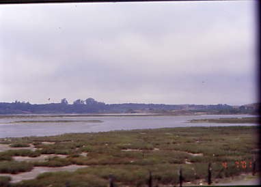 The Elkhorn Slough, a seven-mile long tidal slough and estuary on Monterey Bay in Monterey County. It is California's second largest estuary and the United States' first estuarine sanctuary. The community of Moss Landing and the Moss Landing Power Plant are located at the mouth of the slough on the bay. The Elkhorn Slough National Estuarine Research Reserve and Elkhorn Slough State Marine Conservation Area are in the area. Elkhorn Slough harbours the largest tract of tidal salt marsh in California outside the San Francisco Bay and provides much-needed habitat for hundreds of species of plants and animals, including more than 340 species of birds.