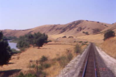 7/14/2005 I awoke at the south end of the Chico siding, meaning we were two-and-a-half hours late. It was a beautiful clear California morning with the Sutter Buttes to the southwest. I enjoyed an early tea in the Pacific Parlour Car before going to the dining car for French Toast and sausage and dined with Paul from San Jose and Andrew going to Imperial Beach. After breakfast, we crossed the Feather River and Coast Starlight made the turn onto the former Western Pacific at Binney Junction. We then ran through Marysville and crossed the Bear River with good conversations in the Parlour Car until we crossed the American River.