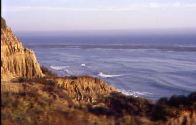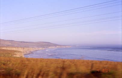 A different view of the coastline. I returned to my room before Point Conception and turned east along a beautiful shoreline in the last light of the day then at Gaviota, we paused while Union Pacific 3929 West cleared into the siding all the way and was off the mainline. After we realigned the east switch, we continued eastward then knowing I had a bus ride ahead of me to get home, I napped from east of Gaviota to Van Nuys, where at 11:15 PM, I packed the room before I using the railphone to call home to let my mother know my plan to take a taxi home whenever we arrived in Santa Ana. I talked with Hak To for the last few miles into Los Angeles and we arrived at 11:35 PM {9:00 PM} on Track 10 under a crescent moon.
