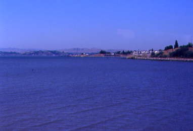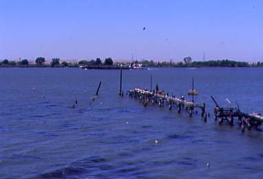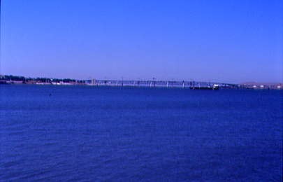 The railroad bridge east of Martinez prior to paralleling the Carquinez Straits.