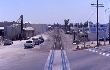After Wasco, the roses, for which the city is famous, were in a state of blooming. We passed four BNSF freights in sidings then met San Joaquin 702 just before we stopped at Corcoran. Railroad crossing replacement delayed us where the BNSF crosses the San Joaquin Valley Railroad, which was actively being worked on as we passed through, then took the siding at Conejo for San Joaquin 712.