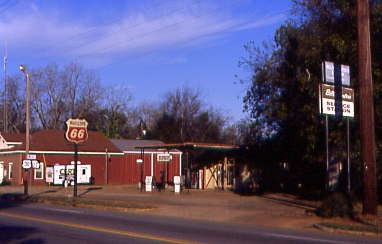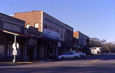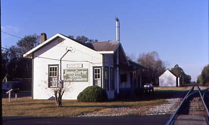 The Drive to Bump Head Road via Plains, Georgia 11/19/2005The two of us arose at 6:00 AM EST and drove north out of Albany towards Americus, stopping at a petrol station in Leesburg for some snacks, then driving along the Norfolk Southern Macon-to-Albany line for a short distance before we broke away. Just before Americus, we crossed over the Heart of Georgia Railroad, on which the Historic SAM Shortline runs passenger train out of Cordele. We came to the road which took us west to Plains, in search of that town's station and Brother Billy's Gas Station. About ten minutes later, we arrived in Plains .