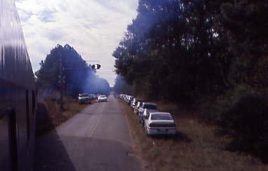 The last views of our train at Bump Head Road. The crew told us that they would make a run south for home rails at Smithville to take the train back to Sasser via Dawson. I knew Chris and I could follow and photograph it as long as we had light so departed and returned to the block signals where the road to Albany met the railroad and set up there.
