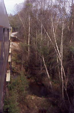 Crossing Kinchafoonee Creek at MP 30.3 on a 513 long open deck pile trestle.