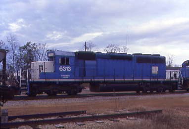 Georgia Southwestern SD40-2 6313, ex. EMD Leasing 6313, exx. SOO Line 6313, nee Milwaukee Road 29 built by Electro-Motive Division in 1973.