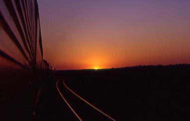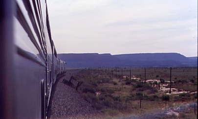 5/21/2005 I awoke just as the train was leaving Flagstaff on a bright, sunny, beautiful clear morning. Since I have travelled and have taken so many pictures of the route, I will attempt to give you one or many more new views. It always amazes me how quickly you leave the forest and return to the desert. While waiting in the lounge car for breakfast as we crossed Canyon Diablo, a few brief views of the Meteor Crater came into view. At 6:30 AM, I was seated at a table in the dining car with Lee going to Dodge City, Ramona going to Albuquerque and Adriana going to Newton, Kansas then to Oklahoma. I ordered French Toast and sausage, which was filling, then returned to my room to read the Arizona Daily Sun and listen to two of the CDs from a four disc ABBA box set. As Arizona turned into New Mexico, I was listening to the song "The Visitors" before we reached Gallup.
