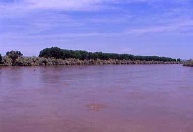 The Rio Grande River before we arrived at Albuquerque with the Mick Jagger CD ending there as we arrived thirty-two minutes early. I walked over to Cold Stone Creamery for a vanilla with crushed Kit Kat bars ice cream and went by Century Theater to see how many showings were being offered of the new Star Wars movie "Revenge of the Sith"; I planned to see it the day I returned home to Santa Ana. I returned to the train and stood in the shade on a very hot day and noticed that the "Wisconsin" had been in Coast Starlight service by the remains of an Amtrak West decal with the famous pointless arrow Amtrak symbol. I wished that Amtrak would return to the arrow, instead of the "Three Sheets in the Wind" symbol. I know that symbol is really two rails disappearing over a hill, but the "Three Sheets" is what I and the railroad crews all call it. I saw an former Pacific Surfliner engineer Ruben and chatted briefly with him.