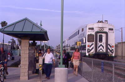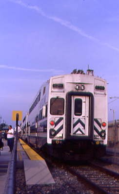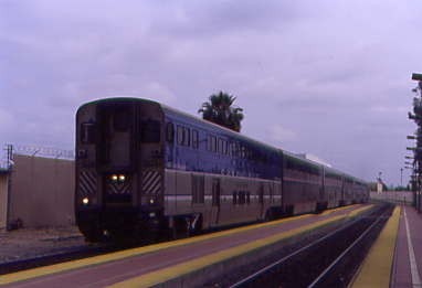 The stops of Chatsworth, Van Nuys, Bob Hope Airport and Glendale were made before we arrived at LAUPT three minutes early and Ken left our group there. The three of us waited for our 10:10 PM departure as the train filled with new passengers then departed on time and made a quick run to Fullerton, where Steve and Jack detrained. At Anaheim, the halo on the "Big A" was lit up, meaning the Anaheim Angels had won their baseball game tonight in Cleveland. We arrived at Santa Ana a few minutes early and Winston and I said our goodbyes then I drove home, ending another Amtrak and Metrolink trip, now having ridden every mile of the Metrolink system.