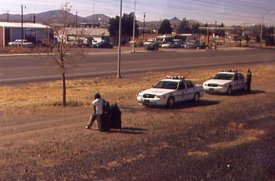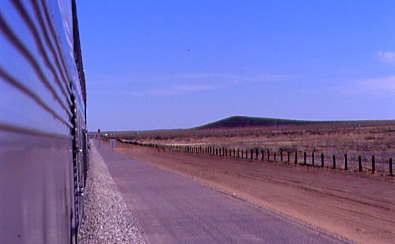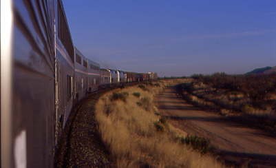 Later we entered New Mexico at Steins and stopped at Lordsburg to drop off four passengers before we left for Deming, or so we all thought. The crew caught the passenger two seats ahead of me smoking marijuana in the bathroom and we went to the east end of Lordsburg then reversed into the siding. The passengers were given a fresh air stop after an hour of waiting for the Lordsburg police to arrive. Two units finally arrived, as well as a Hidalgo County Sheriff. Two eastbound freights sped through here before anything could happen and law enforcement then removed the passenger.