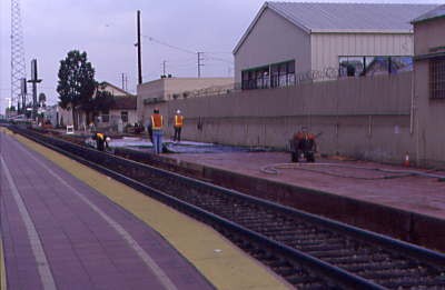 Exiting the trench, we passed Mission San Gabriel as the sun popped out for a few minutes on a mostly cloudy day. Conductor George Rainey took my ticket as we made our way through El Monte and City of Industry. Back into the gloom, we made our Pomona and Ontario station stops. Keith Richards and the X-Pensive Winos' "Live at the Hollywood Palladium" took me just beyond Ontario then The Rolling Stones' "Flashpoint" took me through Colton Yard and we slowly made our way through Old Colton Yard, finally speeding up after crossing over at Ordway in San Timiteo Canyon.