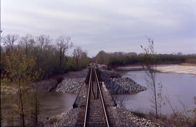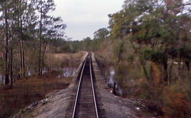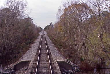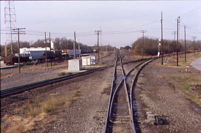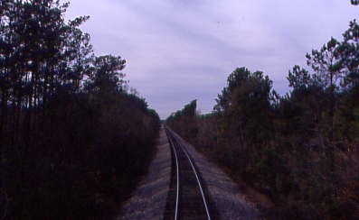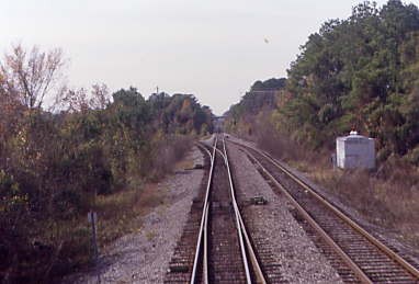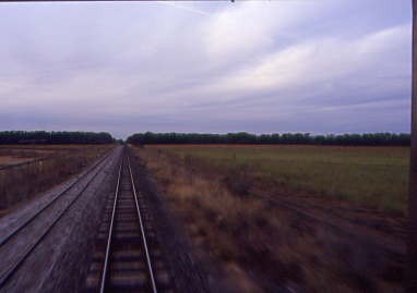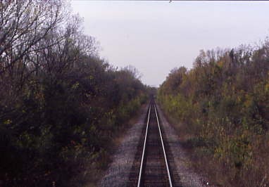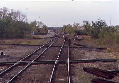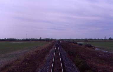 Fields east of Huffman. The west switch for the siding at Martha had been removed.