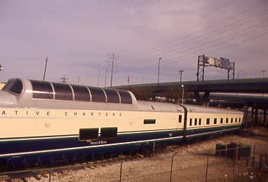 Private cars of Creative Charters, the "Evelyn Henry" and dome car "Warren R. Henry". We departed at 10:33 AM {6:15 AM}.
