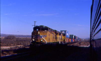 A Union Pacific freight with another behind waited for us at Sierra Blanca.
