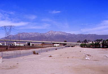 Mount Baldy on a very clear morning. We made it to Ontario at 10:55 AM {8:05 AM} after the crew let smokers smoke and since they had smoked in the bathroom in our car, I thought this was an uncalled-for move by our train crew. We had a switch problem at West Ontario which delayed us eight more minutes then we went into the Montclair siding to pass Union Pacific 1048 East, a local, holding the mainline and waited for a signal to exit this siding. We finally made it to Pomona and departed there at 11:22 AM {8:15 AM} and continued to El Monte, stopping there at 11:37 AM.