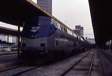 With two trainloads of passengers, as well as early arrivals for the City of New Orleans, you could not hear the station's public address system. Let us say mass confusion abounded! The crew tried to get the sleeping car passengers to board and I used my loud booming voice to assist in getting the message across but they gave up and took tickets and checked identification at the door for only the Sunset Limited. I boarded the 31024 coach, taking Seat 45 for my trip to Los Angeles then detrained to learn the consist, which was P42DCs 82 and 26 again, but new was transition sleeper 39003, diner 38017, lounge 33001 and coaches 31024 and 34057, after which we departed on time.