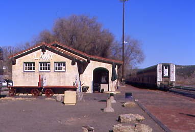 The Santa Fe Lamy station built in 1909, as the eastbound Southwest Chief departs en route to Chicago.