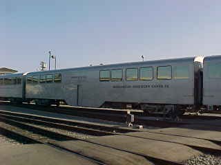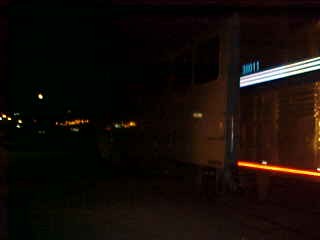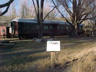 Former Amtrak dining car 8085, ex. Seaboard Coast Line 5955, nee Atlantic Coast Line "Talladega" built by Pullman Standard in 1950. The Lamy station agent kept telling people the westbound Southwest Chief would be arriving at 4:20 PM and I called Julie and she said 5:20 PM, then at 4:00 PM, the agent changed his time to match Julie's time. I sat out in the cool fresh air listening to the Moody Blues' "Greatest Hits". The sun set at 4:45 PM and the Moody Blues song, "I Know You're Out There!" now has a special meaning after I sang it on the platform. I watched the first stars appear in the clear sky as I waited for my train to arrive.