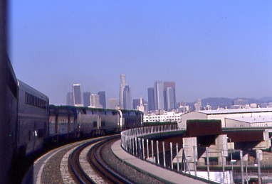 Our train on the flyover across the Alameda Corridor before we arrived at LAUPT at 9:08 AM PST {8:15 AM}.