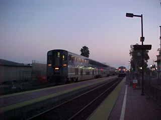 A Metrolink Thanksgiving Day special running from Irvine to Riverside was making several roundtrips. It arrived first while Amtrak held back.