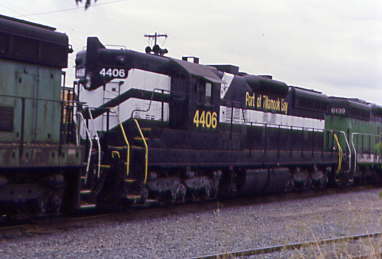 Next the POTB was switching cars and motive power. Here is POTB SD9 4406, ex. Southern Pacific 4406, exx. Southern Pacific 3896, nee Southern Pacific 5418, built by Electro-Motive Division in 1966.