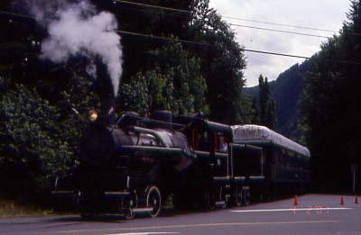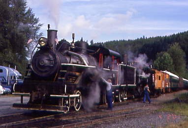 The TrainOur train to Morton had Heisler 91, Climax 10, Milwaukee Road caboose 00194, Southern Pacific caboose 1751, open car 681, coach 902 "Mineral", coach 685 "D'Arcy", coach 582 "Morton", coach 584 "Eatonville", open window 541 "Clopen" and observation 100 "Nisqually River".