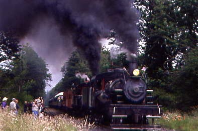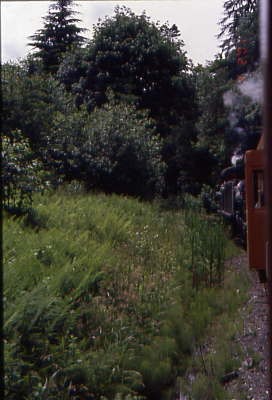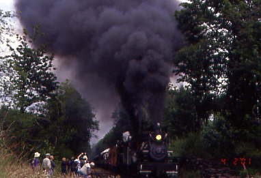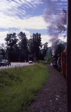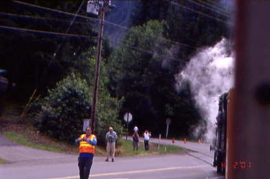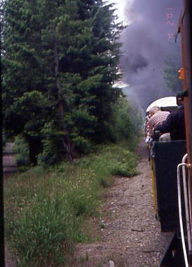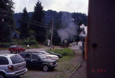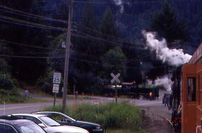 Near MP 47.5, there was a meadow where Joe Harper, the official videographer of this convention, was filming our train's passage. I sat in the bay window enjoying the smells, sights and sounds of our double-headed steam special. Minutes later, we reached Park Junction and turned south, crossing the Highway 7 for the last time.
