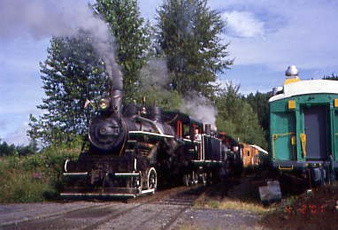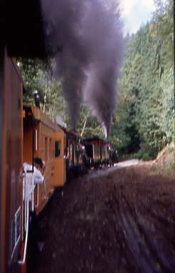 The Heisler returned to the rear of our train to pull it clear so the Climax could escape and run to the wye, then lead our train back north.