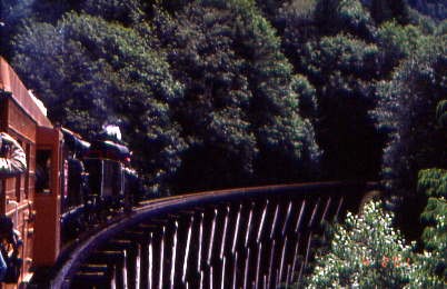 The engines worked hard as they climbed the grade towards Divide, blasting the leaves off the overhanging trees by their exhaust.
