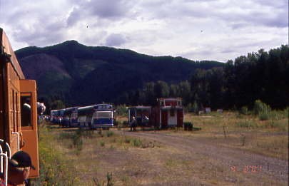 Chris Parker woke up at 6:00 AM and called the room to awaken Bob Riskie and I. Fifteen minutes later, I met Chris downstairs and we walked to the 82nd Street MAX station, taking the next Red Line trolley to the Lloyd Center station. Bob would leave later for his excursion on the Lewis and Clark Explorer from Linnton to Astoria. We walked over to the Doubletree Hotel where we boarded the bus at 6:45 AM and departed at 7:00 AM for the two-and-a-quarter hour drive to Elbe, Washington. On the way there, we went through Morton and I saw the station and the tracks which we partially followed to Elbe. When we arrived there, our special train was being made up the ride to Morton.