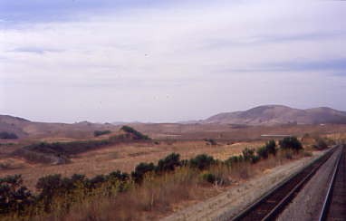 The train stopped at Van Nuys then proceeded through the Santa Susana mountains to Simi Valley while I finished my newest book, "Whole Lotta Led; Our Flight With Led Zeppelin" by Ralph Hulett and Jerry Prochnicky. It is a wonderful look at the career of Led Zeppelin and how the authors' lives were affected by the band. Since we arrived at Simi Valley early, we had an extended fresh air break before continuing to Oxnard, where we also arrived early, then soon reached the shoreline of the Pacific Ocean as I listened to "Ocean" by Led Zeppelin from their "How the West was Won" triple CD. That music took me almost to Santa Barbara, our first official fresh air stop of the trip. We left the low clouds in Santa Barbara and before El Capitan, I spotted dolphins frolicing in the surf. My next musical selection was Trevor Rabin's two CDs called "Trevor Rabin" and "Face to Face", which took me west to Point Conception and onto Vandenberg Air Force Base.
