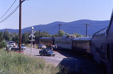 Approaching the grade crossing where tomorrow, passengers sleeping in Mount Shasta City will board, and I will transfer to the chase bus to Klamath Falls.