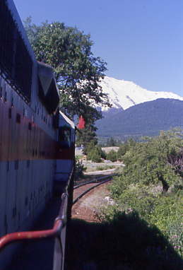 McCloud 37 reversed onto "Wisconsin Valley" and the Second Section of our train. Black Butte is in the background.