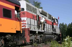 There were problems in Mount Shasta City overnight. No directions were given to passengers about the McCloud 18 photo freight the next morning and the bus driver taking passengers to the Strawberry Court was not given good directions to get to that hotel, so it took a long time for the passengers to reach there. Those taken to the Motel 6 in Weed had to pay for their own rooms due to a major mixup by that hotel but Trains Unlimited covered their expenses as long as they submitted their hotel receipts.