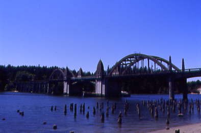 I enjoyed a chocolate malt, which really hit the spot. By 1:00 PM, we were all back on buses to take us to the train at Beck. Chris Skow then came aboard to announce he had set up a photo opportunity at the Siuslaw River drawbridge and would stop there for pictures of our train on the bridge. The buses followed each other to the location, everyone chose their photo spots but were informed the train would not arrive for about thirty minutes.