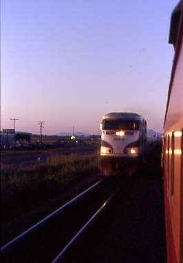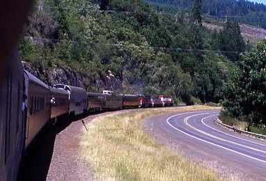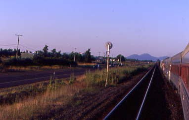 During our stay in Eugene, National Railway Historical Society convention officials boarded the train to distribute convention packets with tickets to those people staying at the Doubletree Hotel and offered the rest of us a free shuttle to that hotel so we could pick up our packets and tickets after we arrived into Portland later tonight. The CORP locomotives were removed at Eugene and our station work delayed the Coast Starlight about ten minutes; we departed at 7:39 PM.