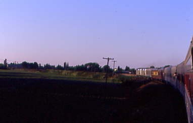 The last sunset aboard the Trains Unlimited NRHS Special. We travelled through the twilight to Albany and it was completely dark when we reached Salem, as I enjoyed the fresh air from the "Pony Express". As it was the 4th of July, it then became time to spot the community's fireworks aerial displays along our route. We learned that our onboard train crew would be dead on the law at midnight, so any more delays would put us in trouble. The Union Pacific Railroad did a great job this whole trip of keeping our special moving.