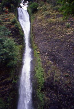 Contemporarily, the state of Oregon maintains a switchback trail that ascends to a talus slope 100 feet above the falls and descends to an observation deck that overlooks the falls' edge. The falls drops in two major steps, split into an upper falls of 542 feet and a lower falls of 69 feet, with a gradual nine foot drop in elevation between the two. The two drops are due to a zone of more easily eroded basalt at the base of the upper falls.