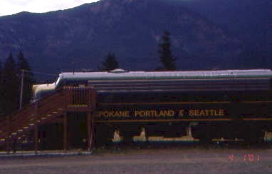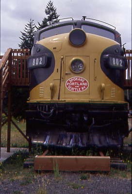 We stopped at the Columbia River Gorge Interpretive Center where Spokane, Portland and Seattle F9A 802, ex. Burlington Northern rotary snow plough power unit 972569 1981, exx. Burlington Northern 782 1973, exxx. Burlington Northern 9816 1970, exxxx. Northern Pacific 6704A 1965, nee Northern Pacific 7013D, built by Electro-Motive Division in 1956. While in passenger service, it pulled the Vista Dome North Coast Limited passenger train between Chicago and Seattle. It was retired in 1998 and BNSF donated the empty carbody to the Columbia Gorge Interpretive Center Museum for static display and it was painted and lettered Spokane, Portland and Seattled. However, this railroad did not own any F9As.
