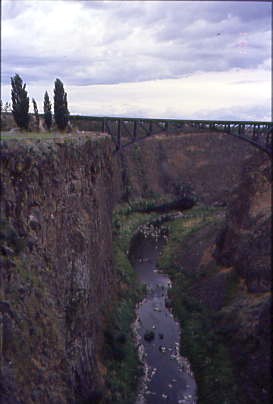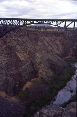 Our next stop was the Crooked River bridge north of Redmond, which, not to sound like a broken record, would have been crossed also. The Oregon Trunk Railway bridge, constructed in 1911, was the first structure to cross this spectacular gorge. Prior to construction, the only crossing of the Crooked River in this region was located about a mile upstream, where the canyon's sheer basalt walls begin tapering gradually into the surrounding landscape.