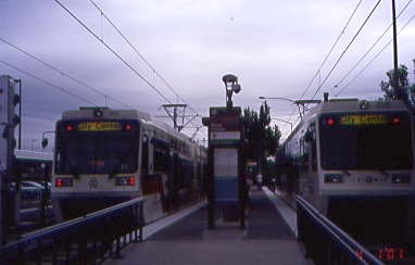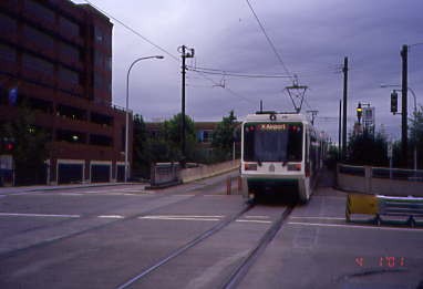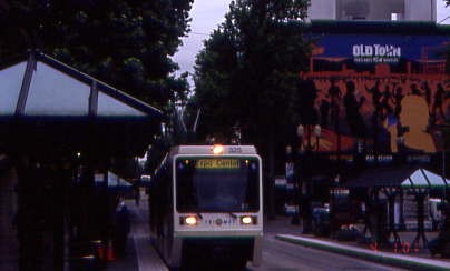 A Red Line trolley en route to the airport at 82nd Street. I walked down to the platform and about a minute later, a Blue Line trolley to Hillsboro arrived to pick me up and took me to Chinatown, where I detrained to make a rail-to- rail connection to the new Expo Line. You can get off at the Rose Quarter station and walk across two streets to the Interstate/Rose Quarter station.