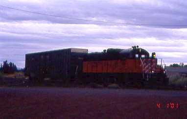 From here we drove through Redmond in the worst traffic I had ever driven in a state other than California. We drove through Bend out to south of town where we looked for Bob's property and thought he found it, then returned to Redmond and I took side streets to avoid most of the traffic. North of Redmond, we found the Crooked River Dinner Train parking lot and as soon as I parked, the City of Prineville Railway local arrived.