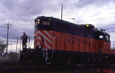 City of Prineville Railway GP20 989, ex. Milwaukee Road 989, exx. Milwaukee Road GP9 238, nee Milwaukee Road 2388 built by Electro-Motive Division in 1954.