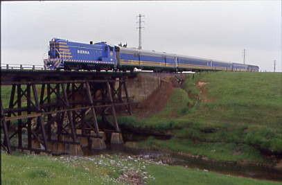 Photo runby thirteen, after which we returned to Oakdale, arriving there at 2:00, after twelve photo runbys on this great railfan excursion. A special thank you to Engineer Larry Ingold, Vice President of the Sierra Northern, Conductor Mike Edwards, manager of all train operations, Shelia Gaiser, switching engineer and conductor, Cecelia Banks, server and cocktail waitress, Brittany of the wait staff and Lillian, a train manager. A special thank you to Ted Benson for all of his knowledge and picking out excellent photo runby locations. All these fine people combined provided an excellent Sierra Railroad Railfan Trip 2005.